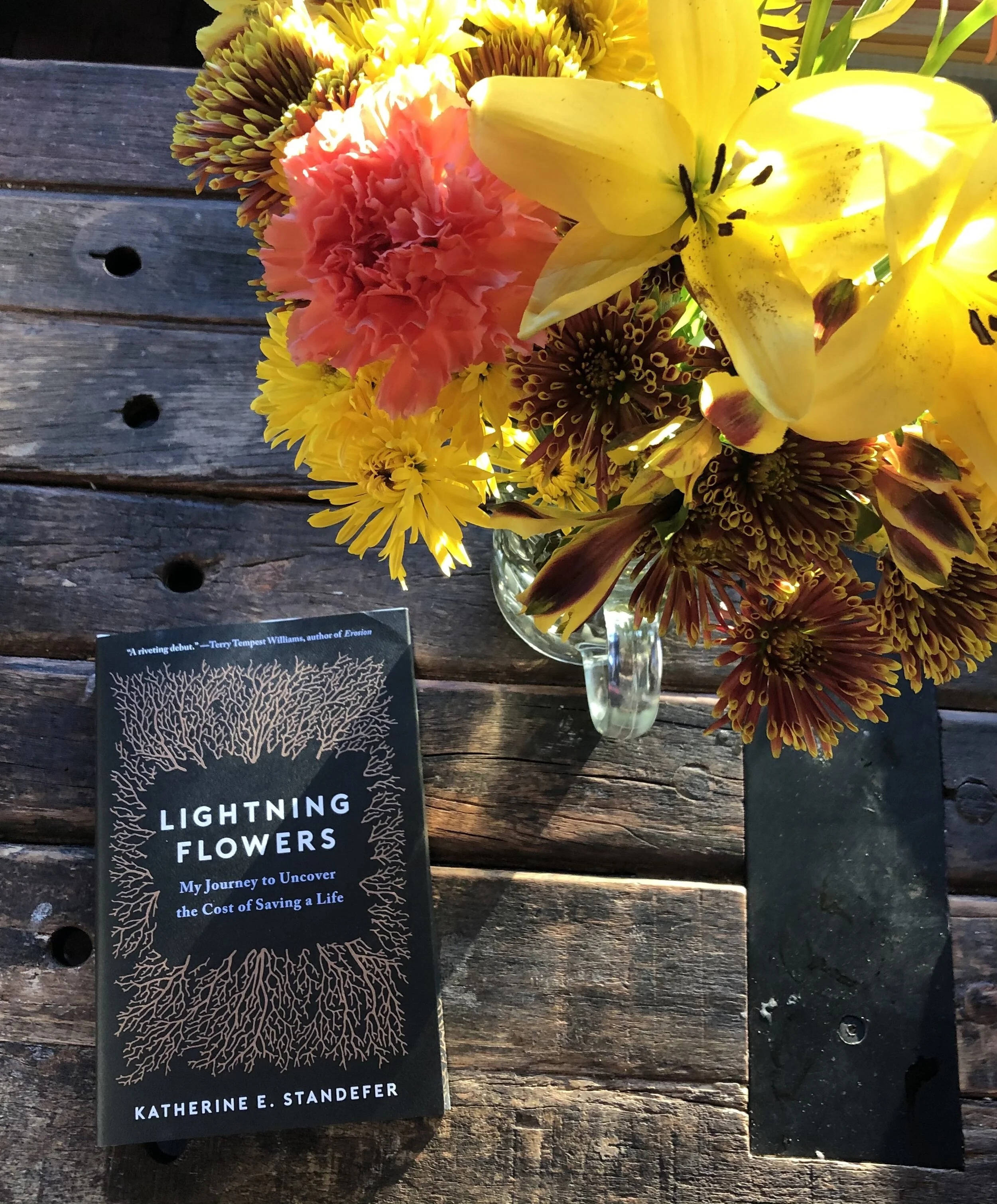 Please bring your own copy of Lightning Flowers. It’s available at all independent bookstores and major retailers. To find your closest independent bookstore, visit Bookshop.org. And consider ordering an extra copy to gift to a loved one or medical professional.